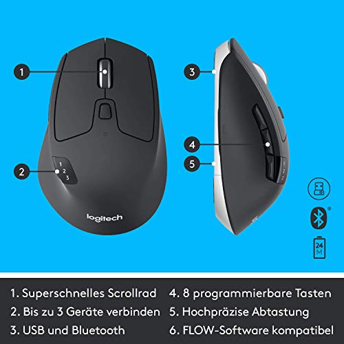 - Easy-Switch für Maus und Tastatur: Tippen Sie am Computer und switchen dann zum Tablet, Smartphone oder einem zweiten Computer
